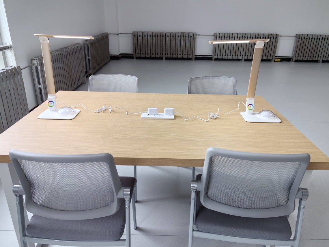 此次改造聚焦师生学习需求,硬件升级亮点纷呈。所有自修室桌面均增设电源接口与USB充电口,满足电子设备续航需求,实现“不断电”学习;308自修室全面铺设地胶、翻新棚顶,并加装消防喷淋系统与自动报警器,安全等级显著提升,且每桌配备独立阅读台灯,光线柔和护眼;新增设的419自修室还配备空调,保障室内温度适宜。同时,自修室有效座位数量大幅增加,缓解了座位紧张问题。