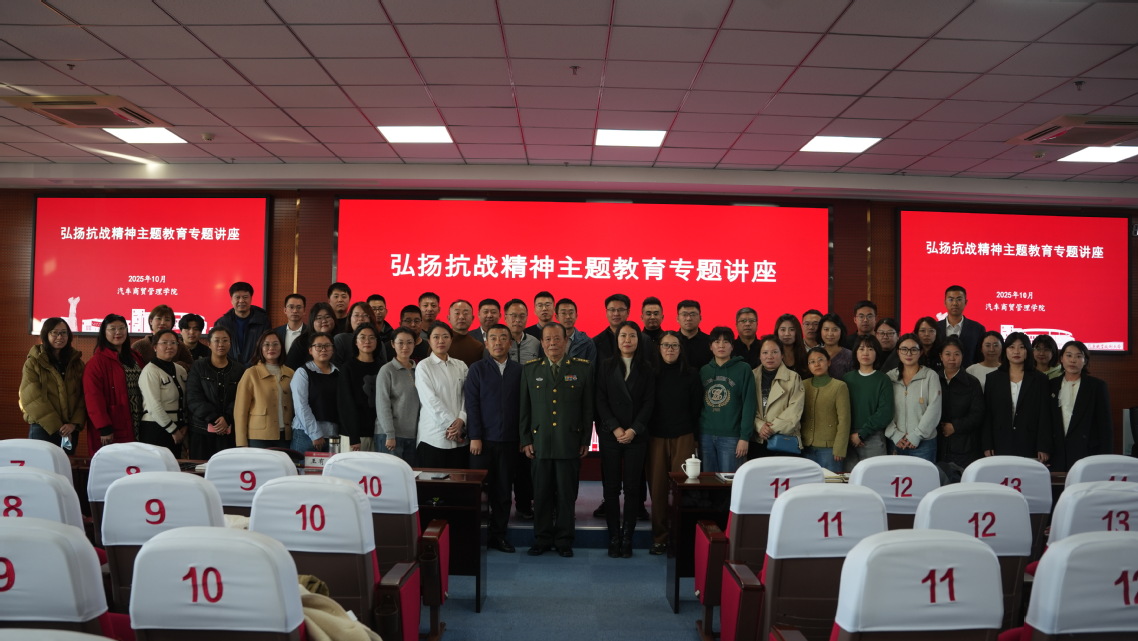 10月21日下午,汽车商贸管理学院党总支在培训楼401室举办“铭记抗战历史·弘扬抗战精神,建设中国式现代化强国——纪念中国人民抗日战争暨世界反法西斯战争胜利80周年”主题讲座。讲座特邀吉林大学校友、吉林省军区原政治部大校副主任、吉林省国防教育讲师团团长、吉林大学客座教授王有志主讲。学院全体教师、2024级学生干部、2025级部分学生到场聆听。