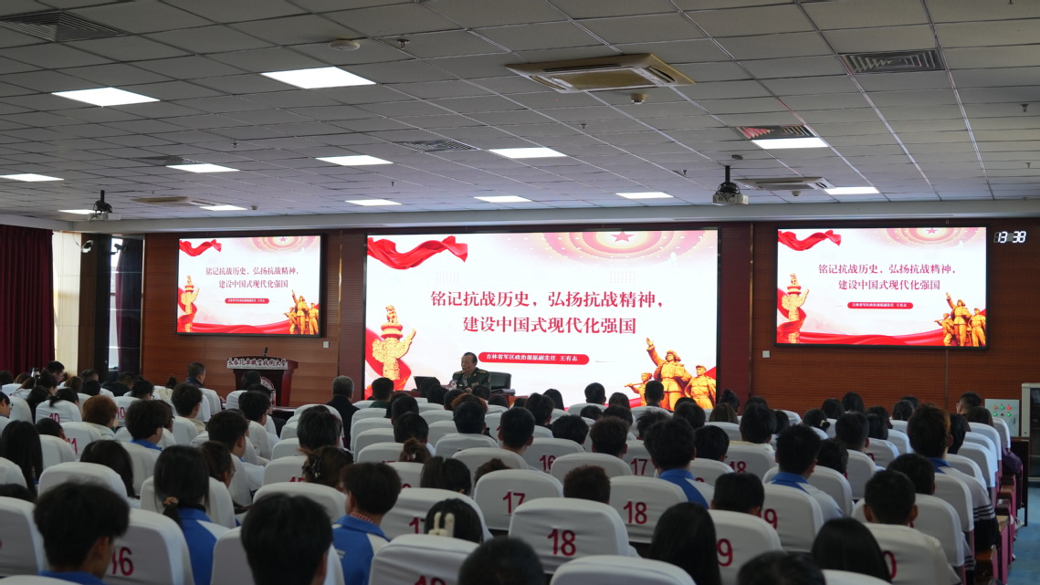 王有志以深厚的理论功底与丰富的国防教育经验,围绕“抗日战争铸就中国近代反侵略胜利丰碑”“开辟世界反法西斯东方主战场”“弘扬抗战精神,建设中国式现代化强国”三方面进行讲述,全面回顾抗日战争时代背景、历程与胜利,阐述其在世界反法西斯战争中的关键作用,并结合新时代的特点,解读抗战精神的时代内涵,从强化爱国主义教育、加强党的建设、建设强大军队、维护世界和平、聚焦现代化目标等维度,明确以抗战精神赋能中国式现代化建设的实践路径,深刻阐释了青年一代在建设中国式现代化强国进程中的使命与担当。